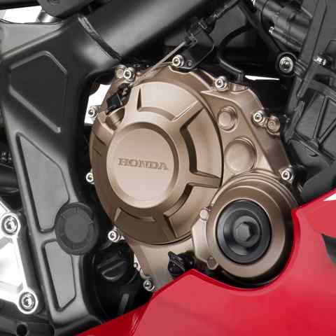 Die Fakten: Der rote Bereich des DOHC-Vierzylinder-Reihenmotors der CBR650R beginnt bei 12.000 U/min. Zusammen mit 70 kW und 64 Nm entsteht reichlich Spielraum für aufregende Fahrten. Nicht außer Acht bleiben darf hierbei auch das in dieser Klasse unerreichte Verhältnis von Leistung zu Gewicht. Eine Anti-Hopping-Kupplung erleichtert das Hochschalten sowie harte Schaltvorgänge beim Runterschalten. Die Honda Traktionskontrolle HSTC (Honda Selectable Torque Control) gewährleistet die perfekte Traktion des Hinterrads, sodass du Kurven mit der Ideallinie nimmst. Sie erfüllt sogar völlig ohne Leistungseinbußen die strenge EURO5-Abgasnorm.